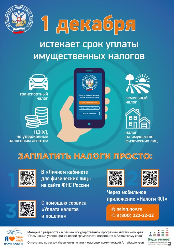 1 декабря 2025 года – срок уплаты имущественных налогов физическими лицами за 2024 год.